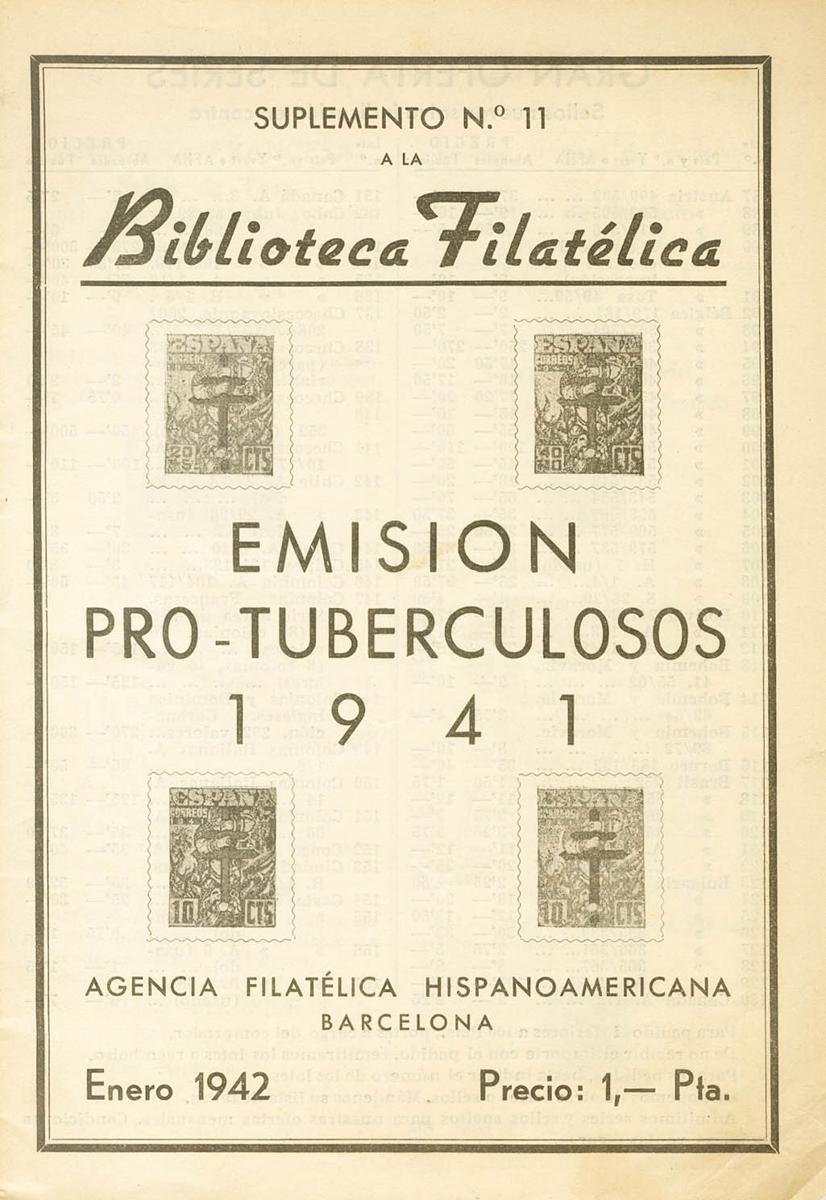 1942. PRO-TUBERCULOUS ISSUE 1941. Supplement number 11 of the Philatelic Library. Barcelona, 1942.
