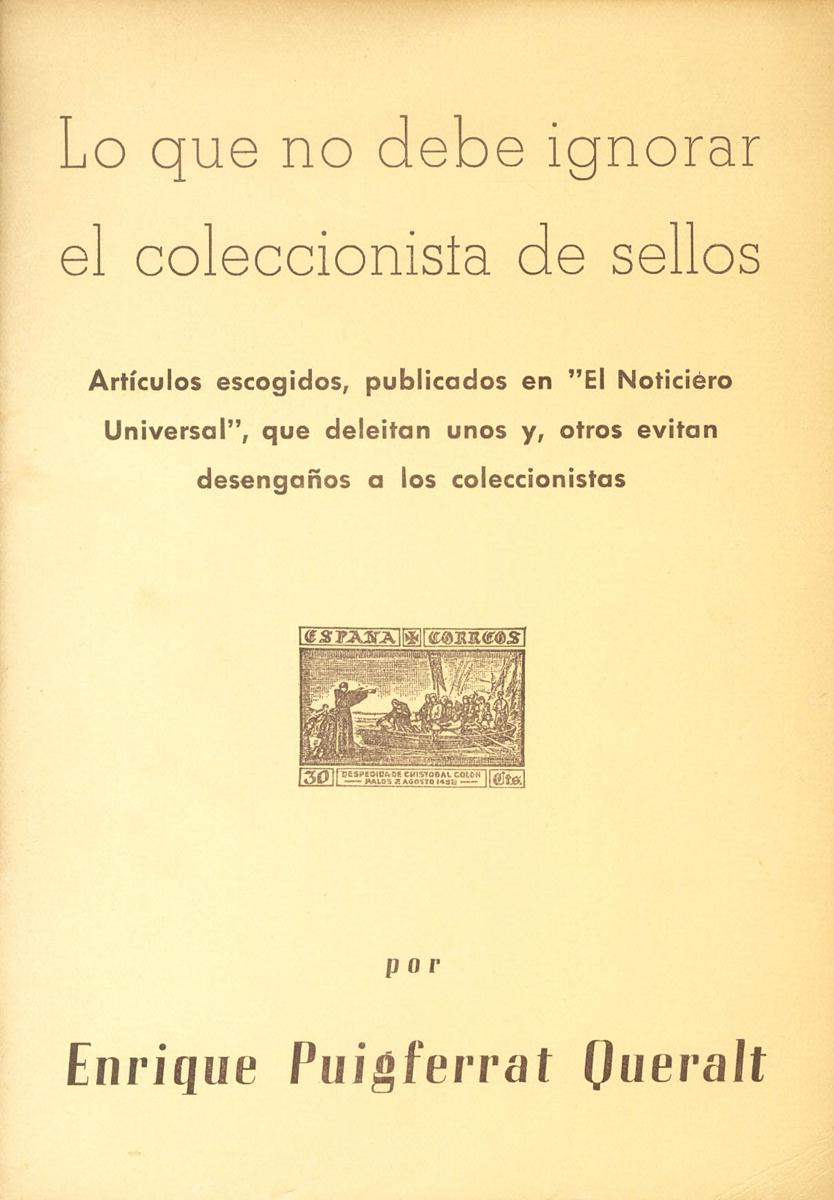 1961. WHAT THE STAMP COLLECTOR SHOULD NOT IGNORE. Enrique Puigferrat Queralt. Barcelona, 1961.