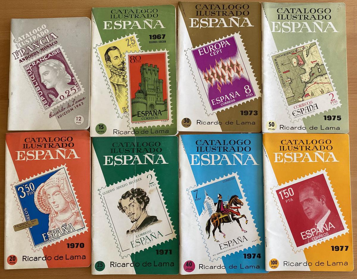 (1962ca). Set of 8 RICARDO DE LAMA catalogues, seven from Spain and one from France, corresponding to publications from 1962 and 1977. TO BE EXAMINED. (Approximate weight: 1 kilo)