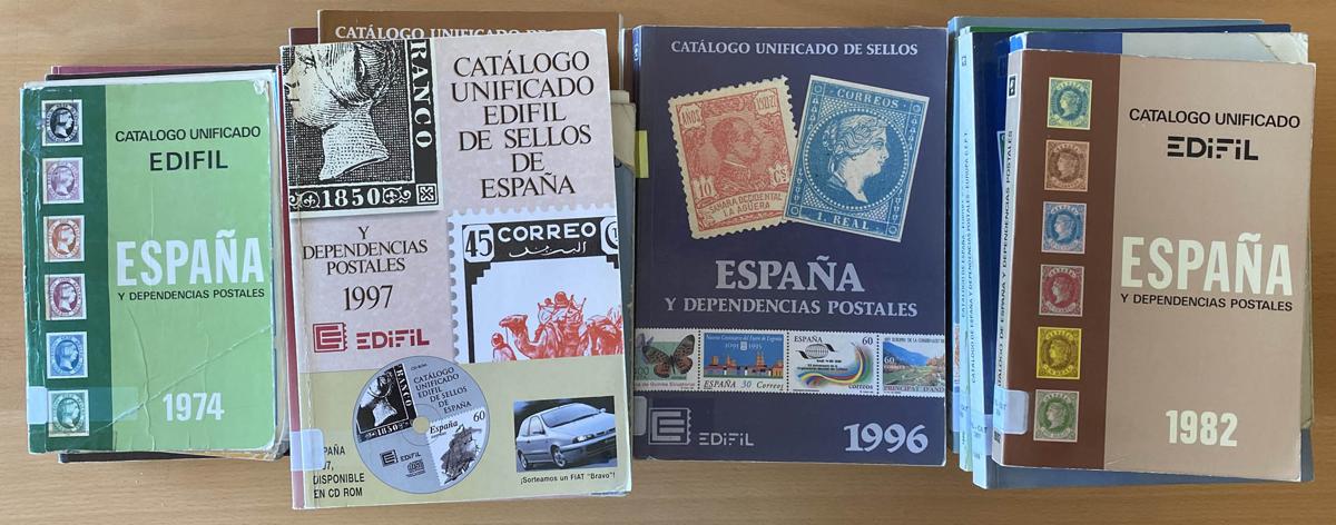(1966ca). Set of 50 Unified and Specialized Catalogs of Spain EDIFIL, includes catalogs from France, Vatican, Great Britain and Europe, published between 1966 and 2001, as well as 17 bound volumes that include publications between 1966 and 1987. TO EXAMINATE. (Approximate weight: 40 kilos)
