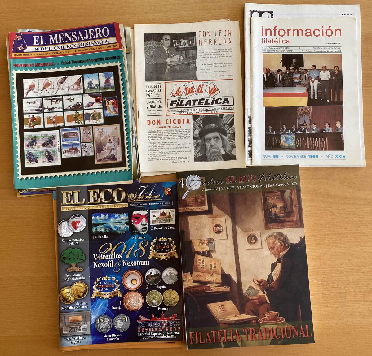 (1973ca). Set of 6 publications from the ACTUALIDAD FILATELICA magazine (1973-1990), 10 publications from the magazine EL MENSAJERO DEL COLECCIONISMO (2002-2010) and 5 publications from the magazine EL ECO FILATELICO Y NUMISMATICO, which includes volume 4 of ESTUDIOS EL ECO. TO EXAMINE. (Approximate weight: 4 kilos)