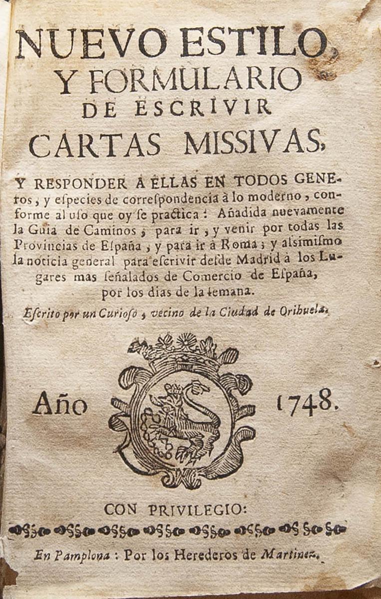 1748. NEW STYLE AND FORM TO WRITE MISSIVE LETTERS AND RESPOND TO THEM. Heirs of Martinez. Edition 1748. MAGNIFICENT AND RARE.