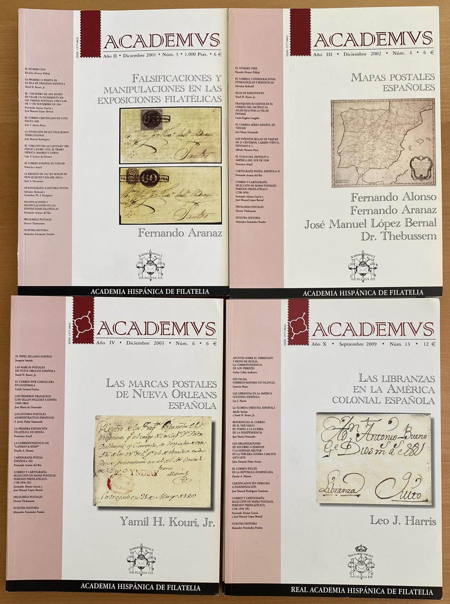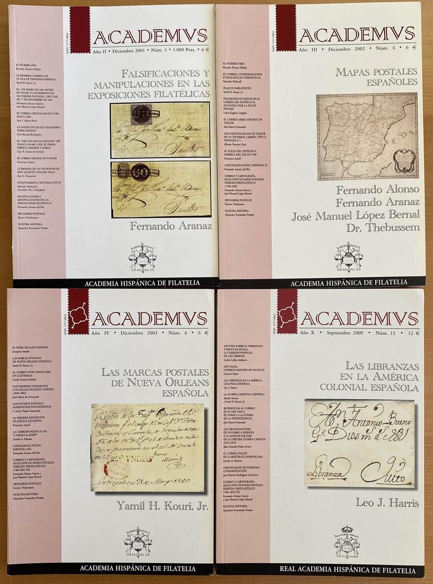 (2001ca). Set of 4 publications of the ACADEMUS magazine, numbers 3, 4, 6(2). Hispanic Academy of Philately. TO EXAMINE. (Approximate weight: 2 kilos)