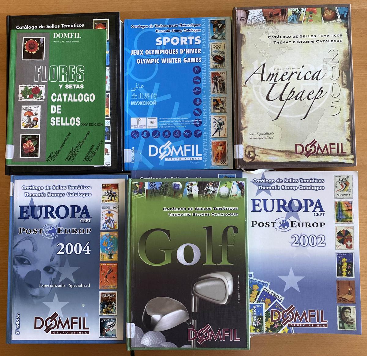 (2002ca). Set of 13 catalogs of DOMFIL Thematic stamps. TO EXAMINE. (Approximate weight: 10 kilos)