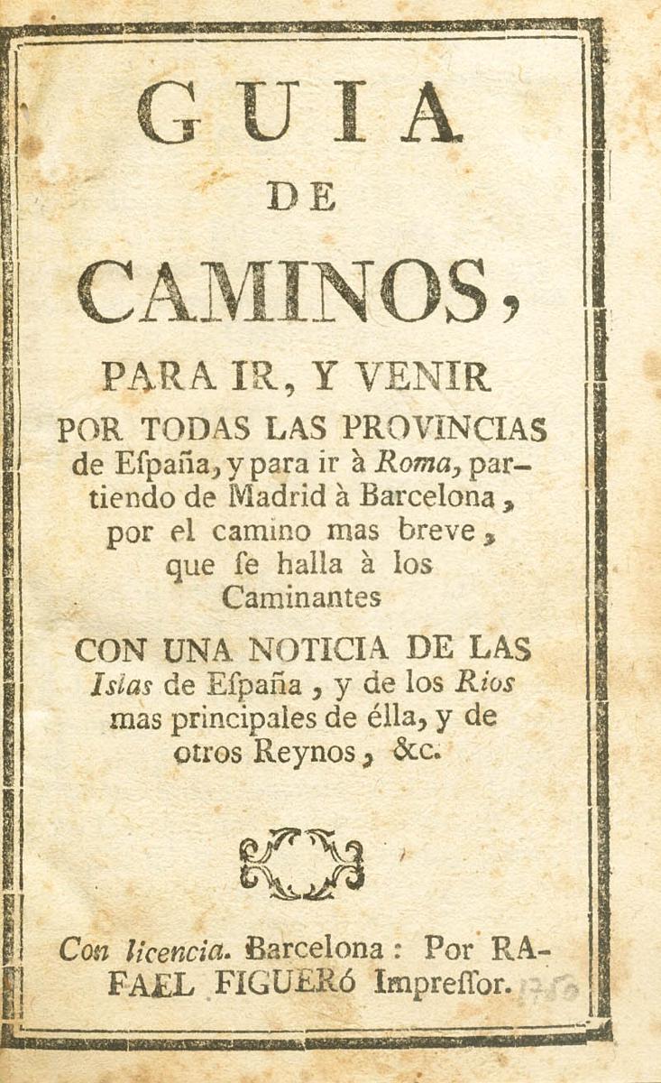 1750. ROAD GUIDE, TO GO TO AND FROM ALL THE PROVINCES OF SPAIN. Rafael Figero. Barcelona, 1750. (bound volume).
