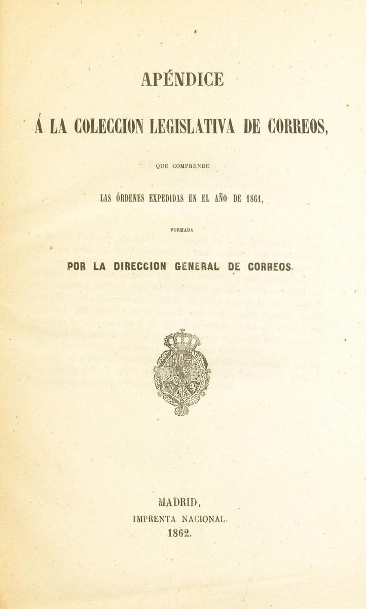 1862. APPENDIX TO THE POST LEGISLATIVE COLLECTION. General Post Office. Madrid, 1962. (bound volume).