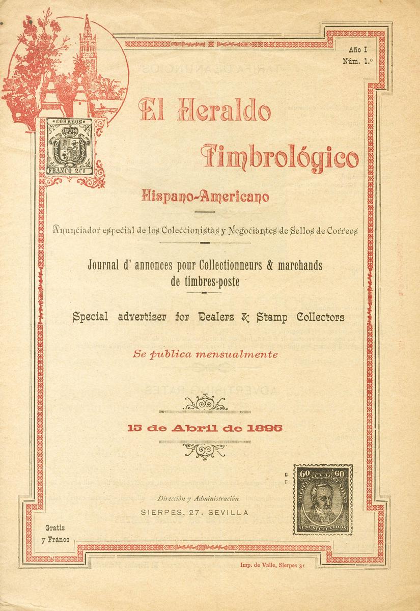 1895. Set of eleven publications of the magazine EL HERALDO HISPANO AMERICANO TIMBROLOGICO. One publication of number 1, two publications of number 2, four publications of number 3, three publications of number 4 and two publications of number 8. Sevilla, 1695.