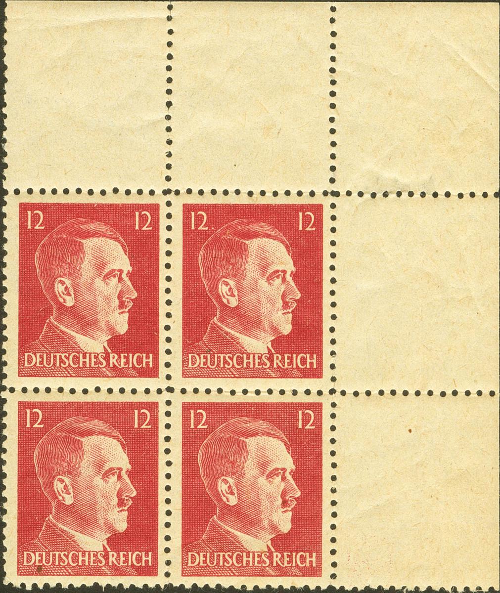 ★★(1942ca). 12 p rose red, block of four. FALSE PROPAGANDA, issued in Rome by the OSS (Office or Strategic Services). MAGNIFICENT AND RARE.