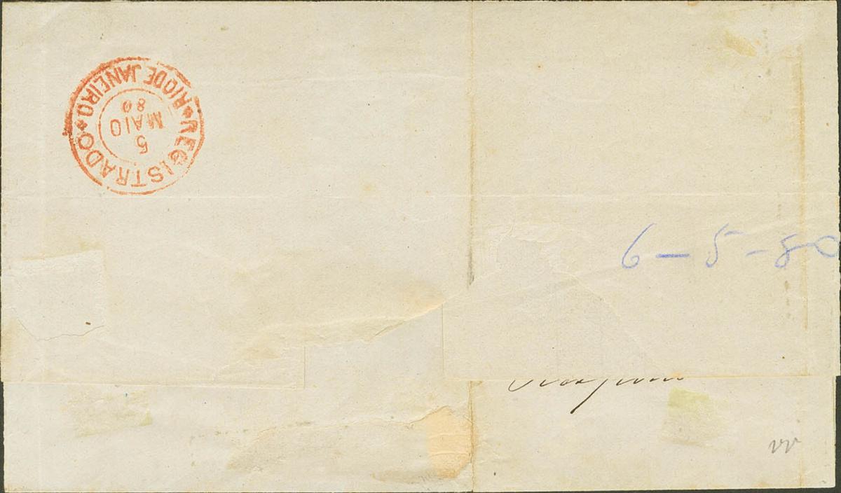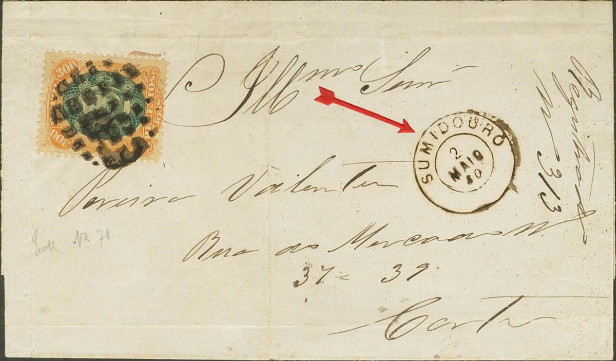 Yvert 47. 1880. 300 orange and green reis. Certificate from SUMIDOURO to RIO DE JANEIRO. On the front, SUMIDOURO date stamp, in writing ink. MAGNIFICENT.