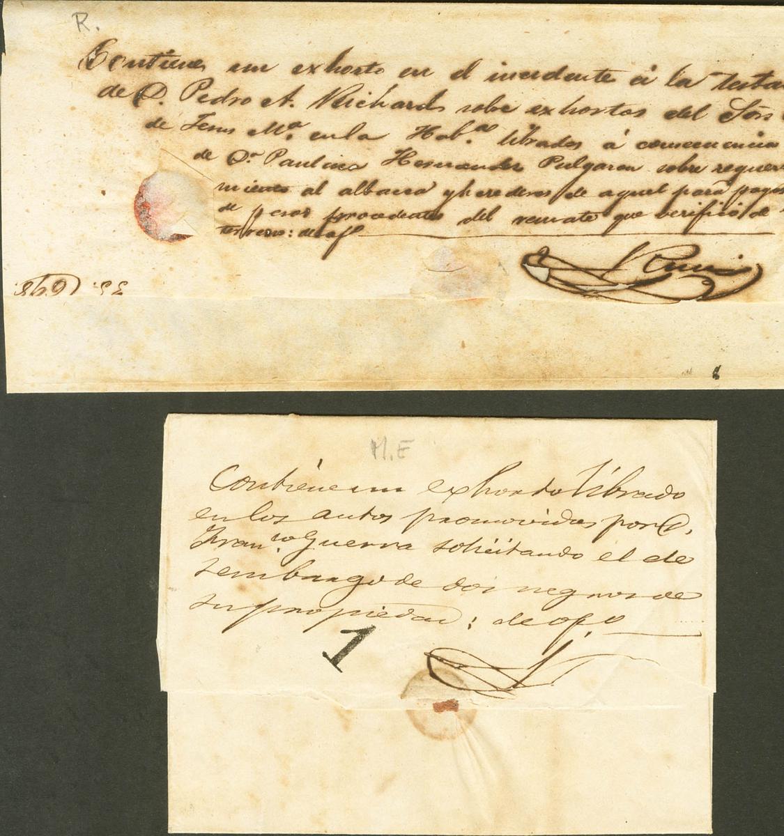 English 1858. Two letters from GÜINES to HAVANA (ink erosions), both with COLONIAL GRILL, to indicate that the letters were circulating franchisees and baeza GÜINES / ISLA DE CUBA, in black and blue, respectively. PRETTY.