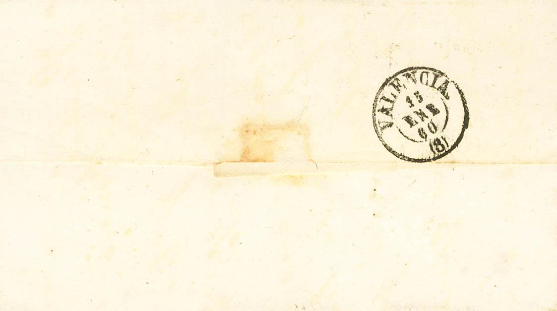 48. 1858. 4 cuartos red. VILLAREAL to VALENCIA. VILLAREAL / CASTELLON cancel. MAGNIFICENT AND RARE.