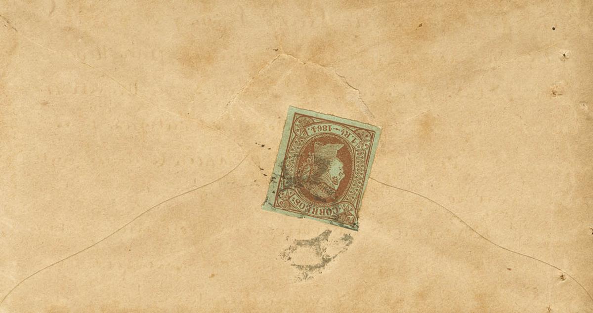 67. 1864. 1 real chestnut (franked on the back). SEVILLE to PUERTO-PLATA (SANTO DOMINGO). Addressed to a Captain of the Expeditionary Army, in Santo Domingo, during the annexation period between 1863 and 1865. MAGNIFICENT AND VERY RARE CORRESPONDENCE DURING THIS PERIOD. Cert. THANKS.