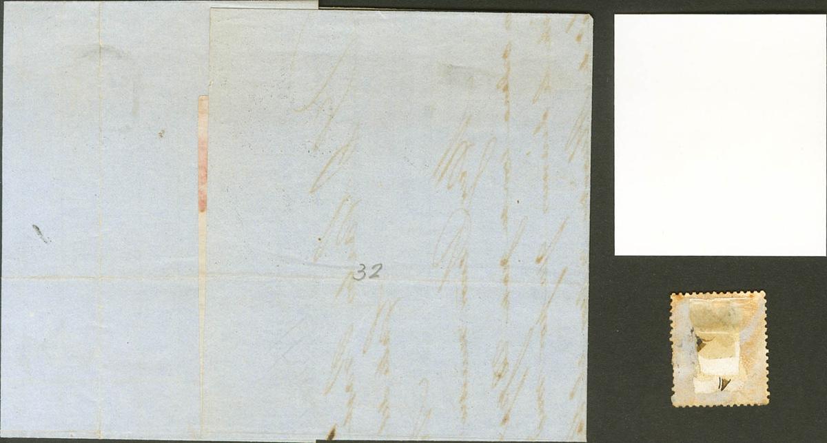 English And V. 23(2), 24. 1864. Set of three French stamps, one of them on a letter, with GRILL WITH Nº2 cancel, on arrival. MAGNIFICENT AND RARE SET.