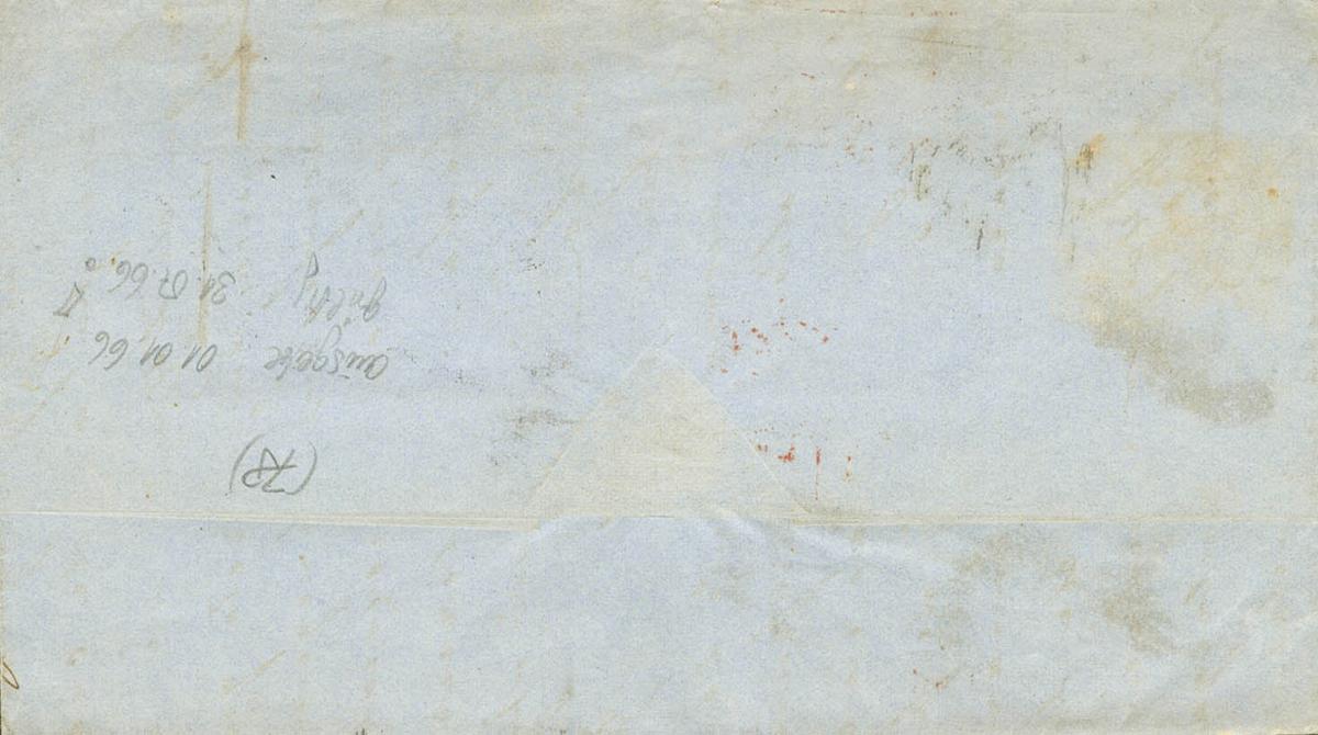 85(4). 1866. 20 lilac cts, four stamps (one archival fold stamp). MADRID to NEW YORK (USA). Double postage via England. MAGNIFICENT.