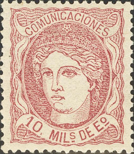 ★ 105. 1870. 10 mils carmine rose. Intense color and exceptional centering. LUXURY PIECE.