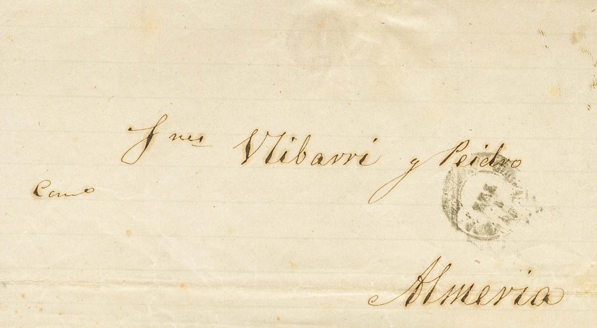 1874. CAVES OF VERA to ALMERIA. On the back mark MAYOR CONSTL. / CUEVAS DE VERA, in blue and annotation "Enabled". MAGNIFICENT.