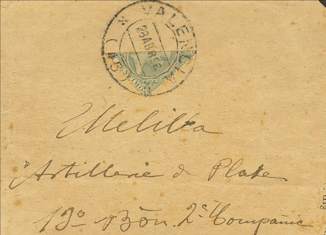 1896. 2 cts green BISECTED. Newspaper Belt from VALENCIA to MELILLA. Postage of 1 cts according to the rate in force since August 1886. MAGNIFICENT AND RARE.