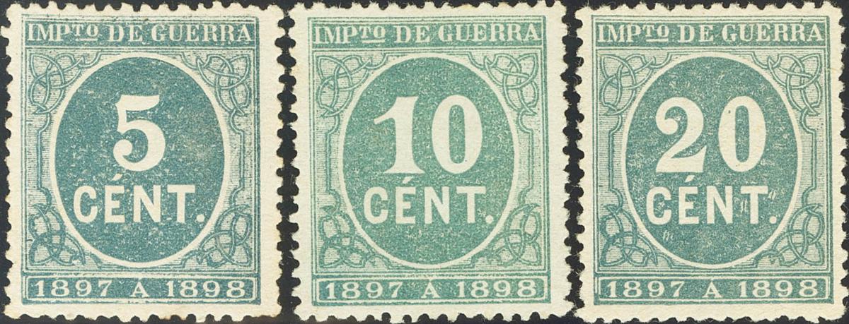 (★) 232, 233, 235. . 5 cts green, 10 cts green and 20 cts green. Excellent centers. MAGNIFICENT.