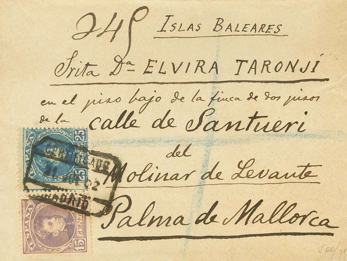 245, 248. 1902. 15 cents and 25 cents. Certificate from MADRID to PALMA DE MALLORCA. On the back arrival. MAGNIFICENT.