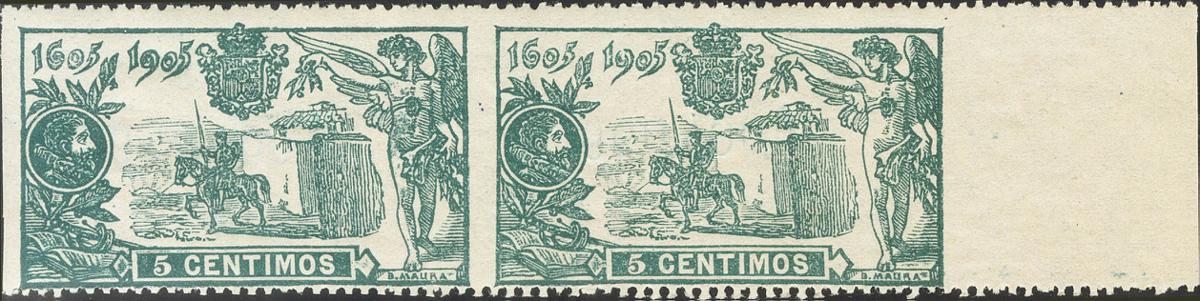 ★★ 257sv(2). 1905. 5 cts green, couple. WITHOUT VERTICAL SERVES. MAGNIFICENT. Edifil 2020: +148 Euros