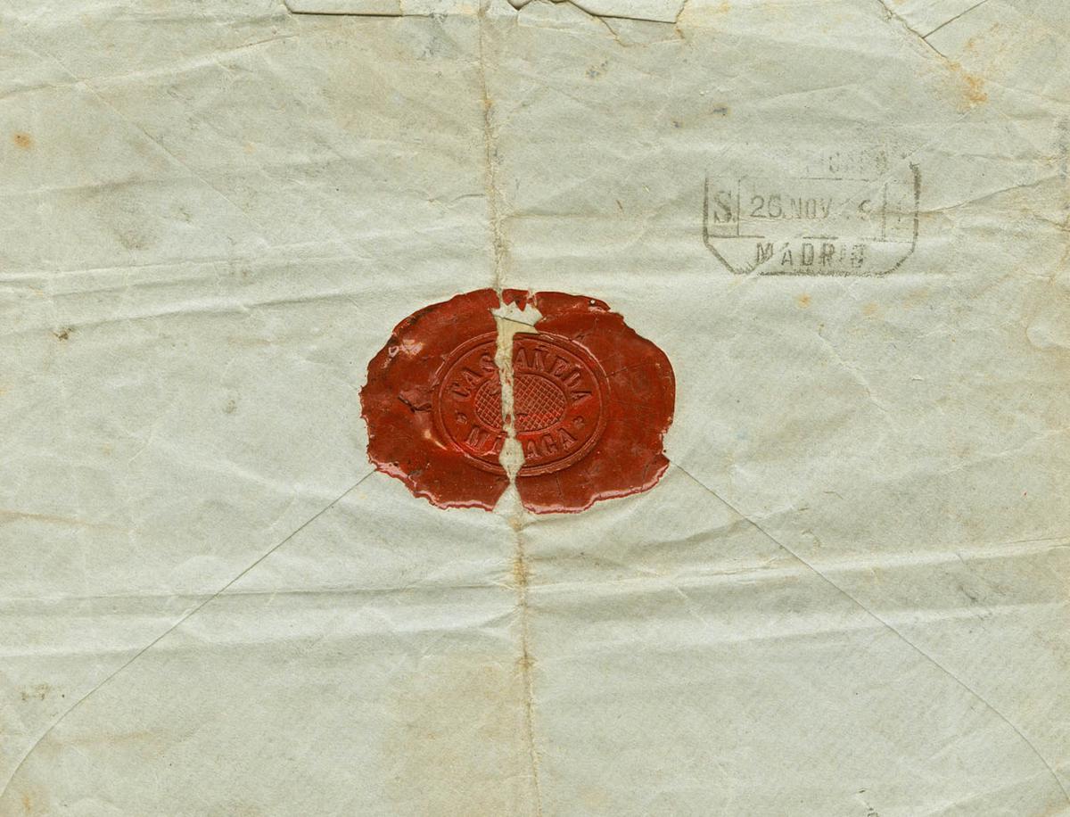 274(2). 1919. 25 cts blue, two stamps. Certificate from MALAGA to LONDON. Transit on the back. MAGNIFICENT.