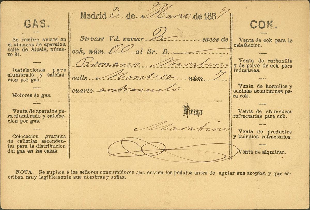 EP11ipa. 1882. 10 cts violet gray on Postal Stationery Card with private overprint DIRECTOR OF THE MADRID GAS LIGHTING AND HEATING COMPANY Correo Interior de MADRID. MAGNIFICENT. (Láiz 2006, 50 Euros)