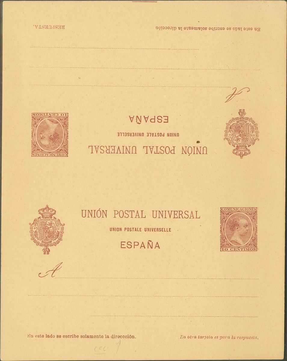 (★) EP33. 1889. 10 cts + 10 carmine cts on Postal Stationery Card (without fold), round trip. MAGNIFICENT. Edifil 2023: +81 Euros