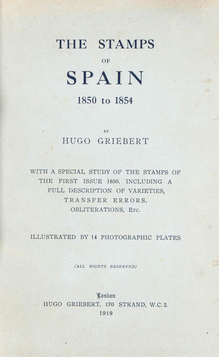 1919. THE STAMPS OF SPAIN 1850 TO 1854. Hugo Griebert. London, 1919. (rebound)