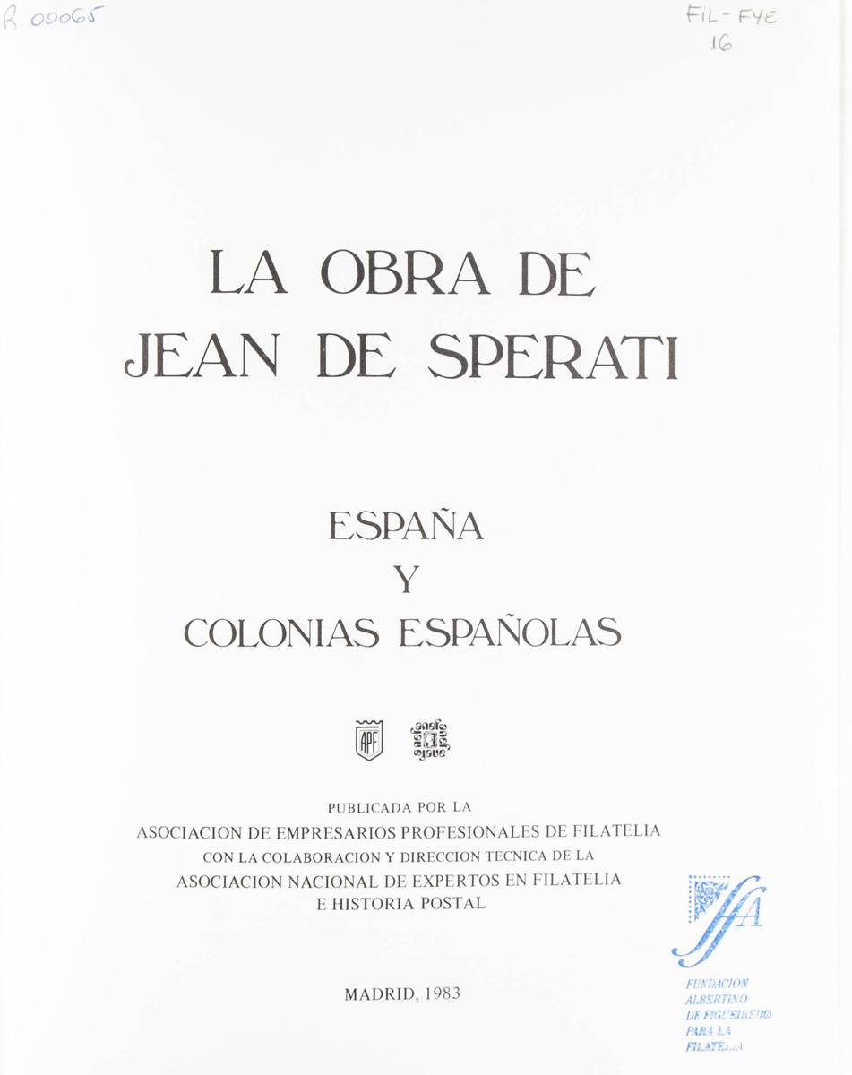 English 1983. THE WORK OF JEAN SPERATI, SPAIN AND SPANISH COLONIES. Robson Lowe. Seal House. Madrid, 1983.