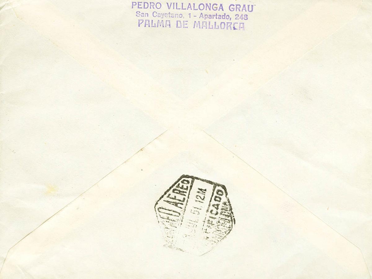 1093, 1095, 1044/45. 1951. 75 cts dark blue, 1.50 pts orange, 5 cts brown and 10 cts carmine. Certificate from PALMA DE MALLORCA to SAINT GILLES (BELGIUM). Transit on the back. MAGNIFICENT.