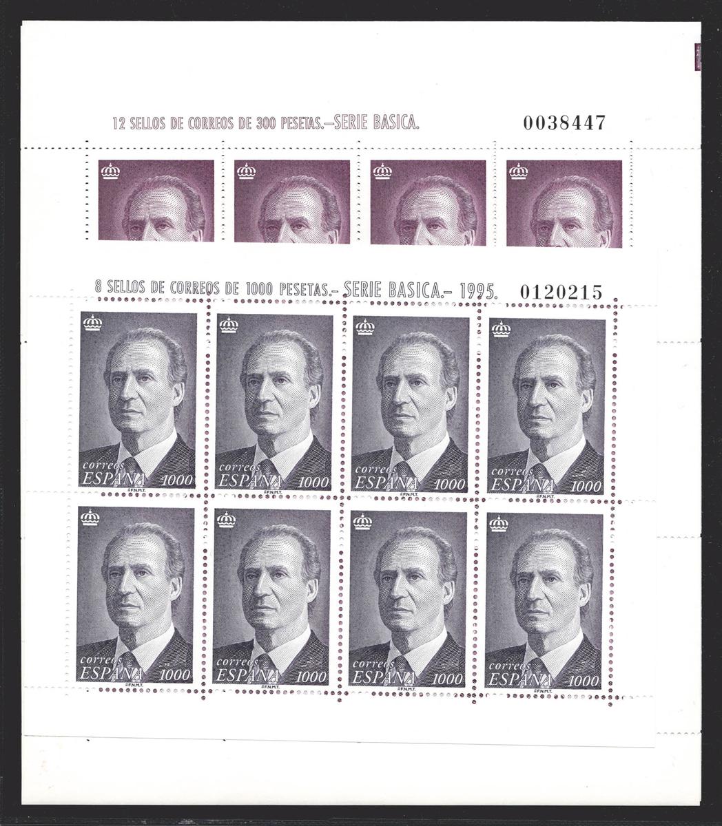★★ MP50, MP54/55. 1995. 1000 violet pts, minisheet of eight stamps, 300 burgundy pts and 500 blue pts, minisheets of twelve stamps. MAGNIFICENT. Edifil 2023: 1,000 Euros