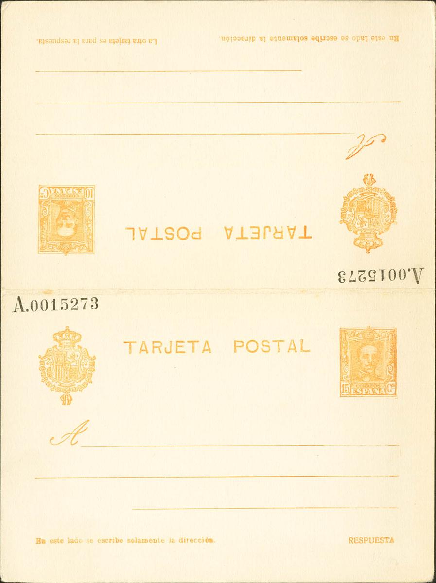 (★) EP58. 1925. 10 cts + 15 cts yellow on Postal Stationery Card, round trip. MAGNIFICENT AND UNUSUAL. Edifil 2023: 265 Euros
