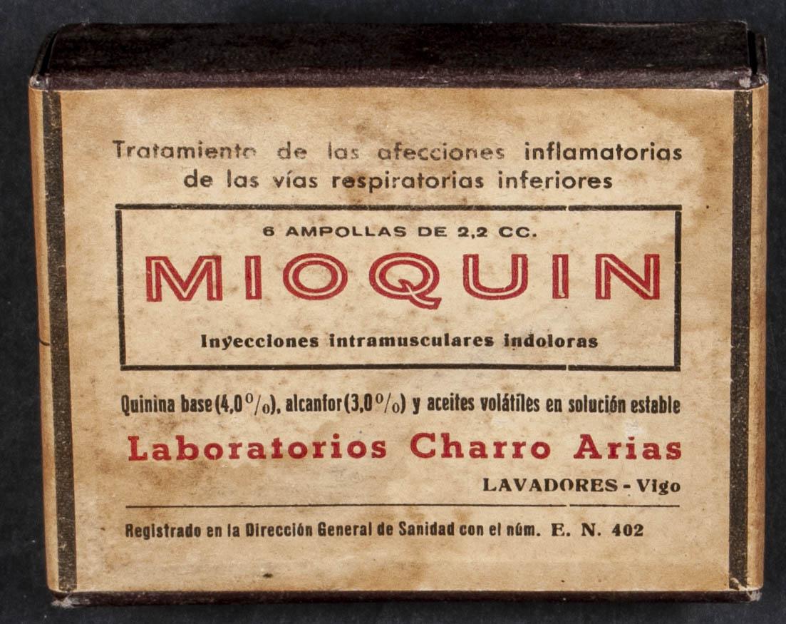 English (1939ca). 5 cts blue, two ESPECIAL MOBIL stamps and 30 cts red, affixed to a still sealed box of six vials of MIOQUIN, from Laboratorios Charro Arias. MAGNIFICENT AND RARE.