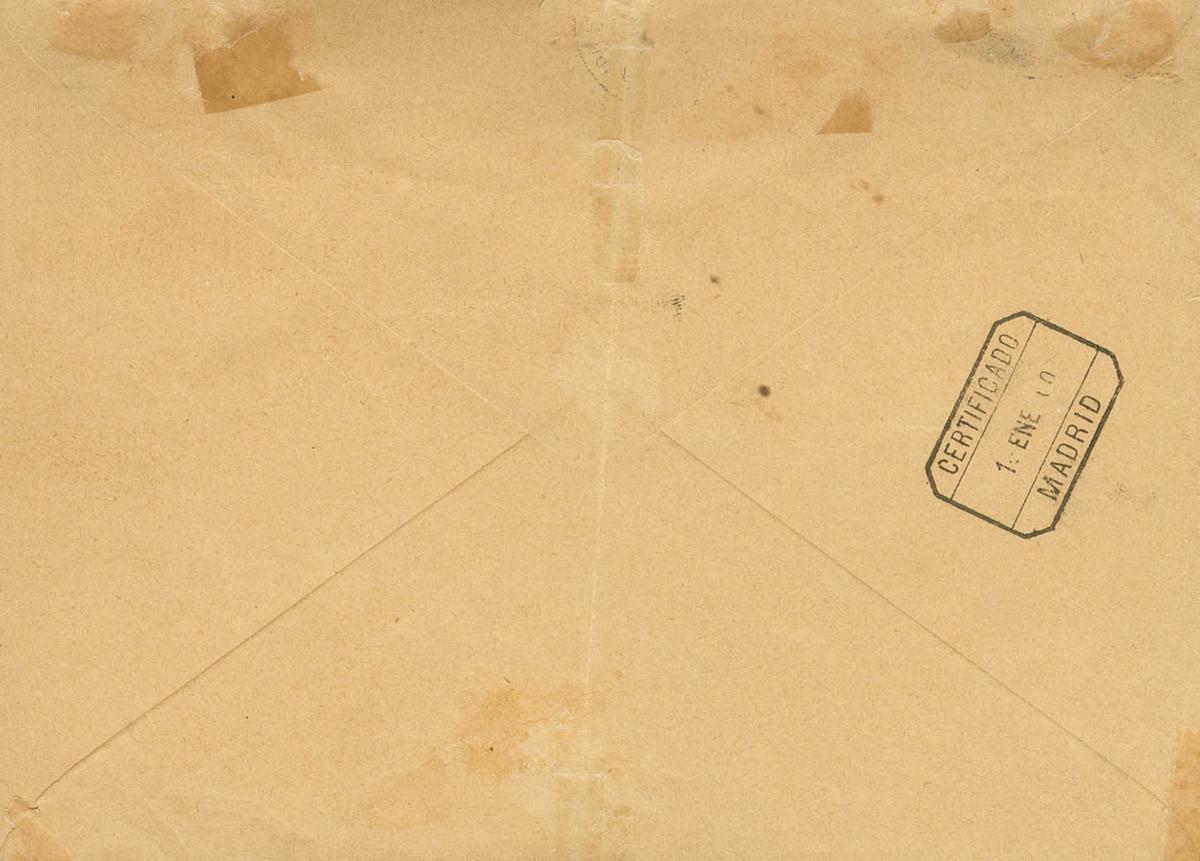 50/53, 55/69. 1899. Complete series, in the absence of the 5 brown mils (the values of 2 mils, 3 mils, 4 mils, 6 cents, 8 cents, 10 cents and 15 cents with line of sample ink). FERNANDO POO to MADRID. On the back arrival. MAGNIFICENT AND RARE.