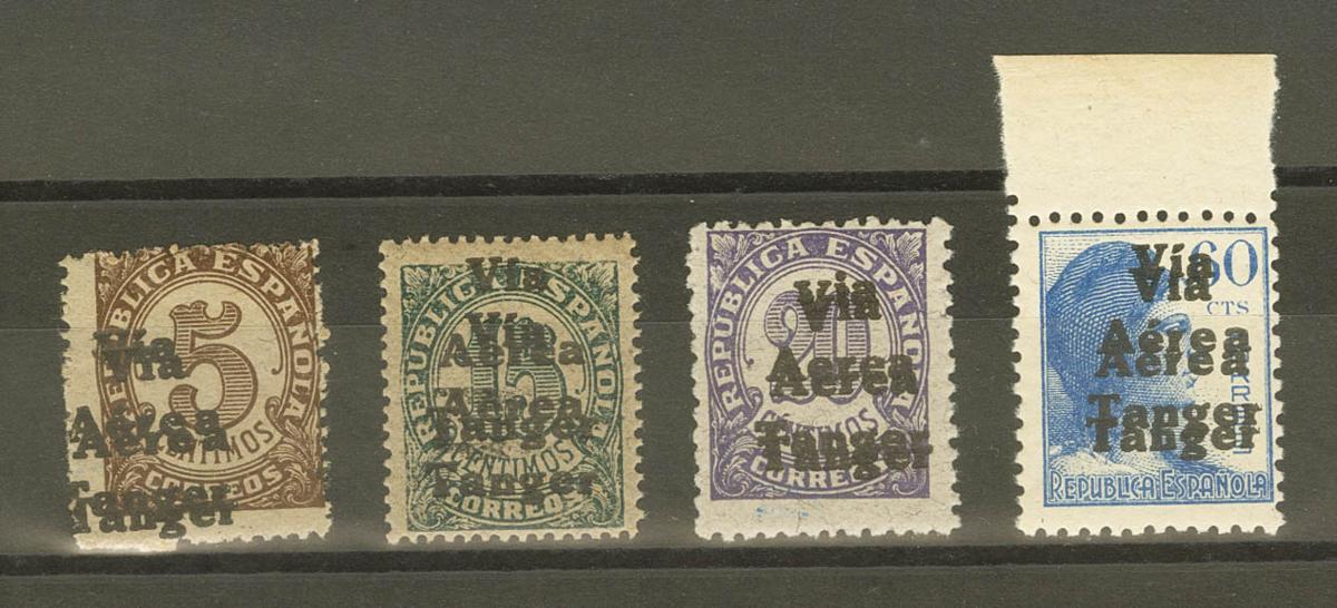 ★★ 128h,130h,131h,137h. 1938. 5 brown cts, 15 green cts, 20 violet cts and 60 blue cts. DOUBLE OVERLOAD. MAGNIFICENT. Signed FARACHE. Edifil 2018: 250 Euros