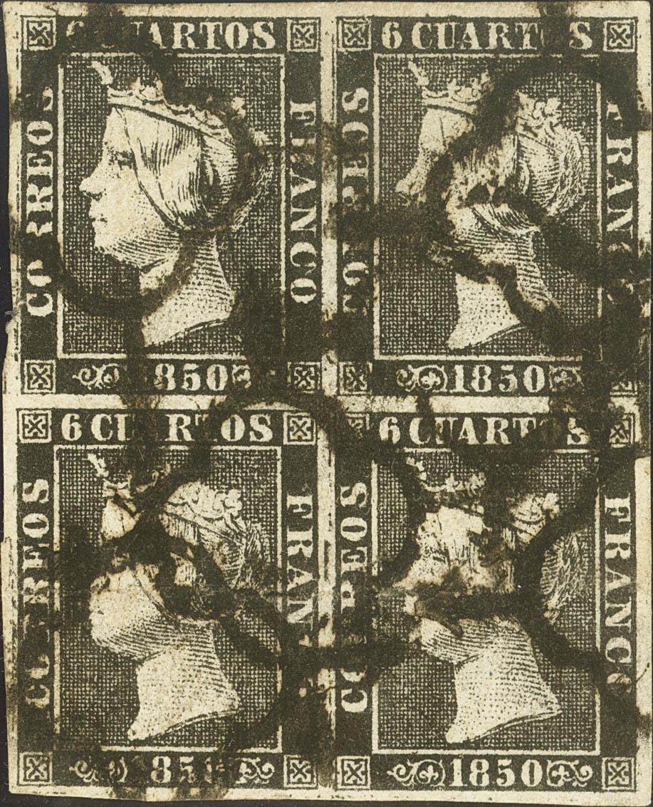 English 1(4). 1850. 6 black cuartos , block of four. MAGNIFICENT. Edifil 2020: 725 Euros