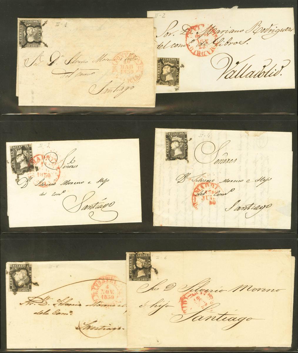 1A(40). 1850. Complete reconstruction of Plate II of the 6 black cuartos in letter with the forty types and canceled with SPIDER postmark. MAGNIFICENT AND RARE SET.