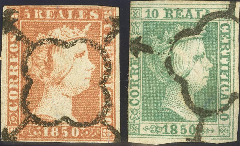 3, 5. 1850. 5 reales and 10 reales (fair margins). PRETTY.