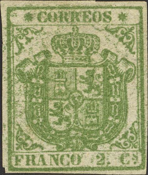 (★) 32. 1854. 2 green cuartos . MAGNIFICENT. Cert. COMEX.