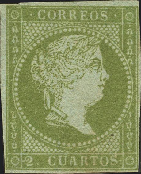 (★) 39. 1855. 2 cuartos green (full margins). MAGNIFICENT AND RARE STAMP IN NEW. Cert. THANKS.