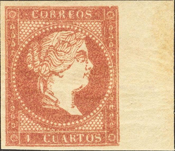 ★★ 48B. 1855. 4 cuartos red, leaf edge (Type III). MAGNIFICENT AND RARE.