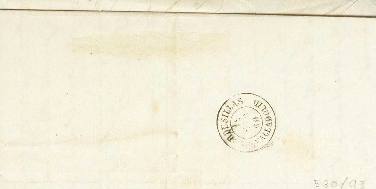 52. 1860. 4 orange cuartos . AREVALO to TORDESILLAS (VALLADOLID). Postmark AREVALO / AVILA. MAGNIFICENT.