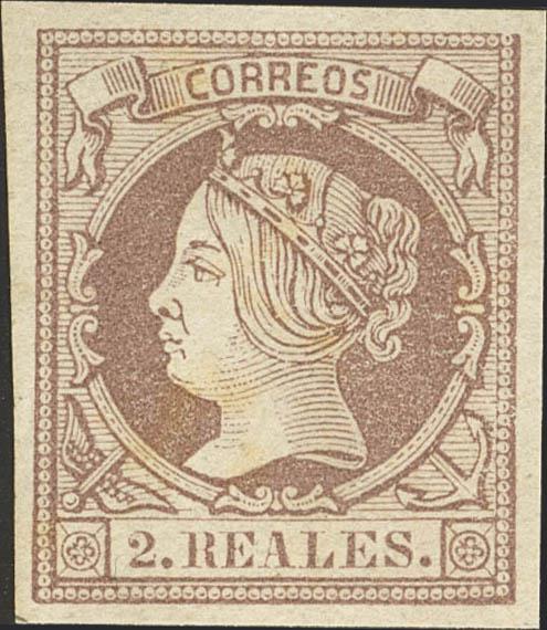 (★) 56. 1860. 2 lilac reales (usual conservation). MAGNIFICENT. Cert. EMF.