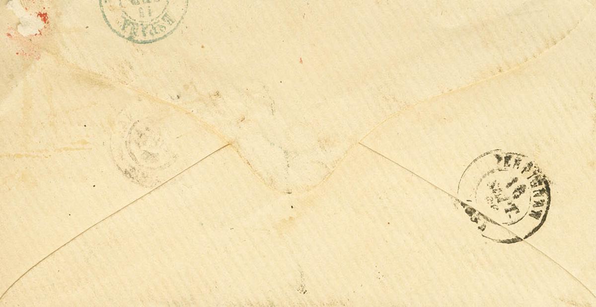 English 82. 1866. 12 orange cuartos , with a period defect where it adhered to a paper support and later circulated from BARCELONA to PERPIGNAN (FRANCE), the French post office detects fraud and considers the letter as not franked, applying the corresponding fees. MAGNIFICENT AND RARE.