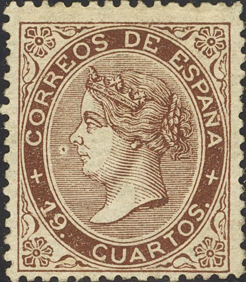 ★ 101. 1868. 19 chestnut cuartos (some teeth retouched). MAGNIFICENT. Cert. EMF.