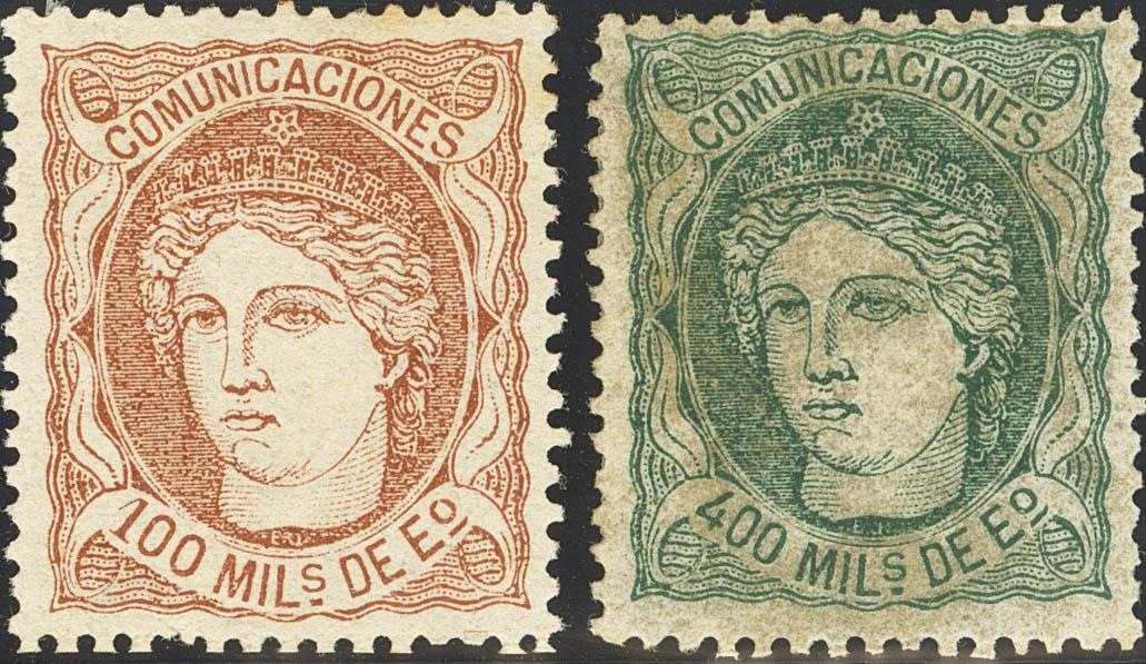 English ★/(★) 108, 110. 1870. 100 brown mils and 400 green mils (retouched teeth). PRETTY.