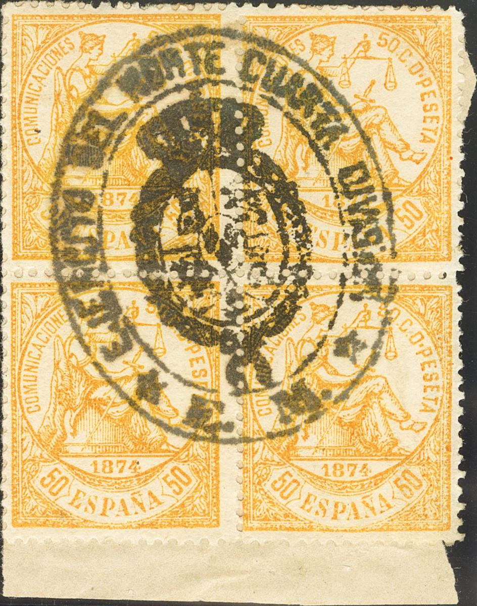149(4). 1874. 50 yellow cts, block of four. Postmark NORTH ARMY FOURTH DIVISION / MAGNIFICENT AND VERY RARE.