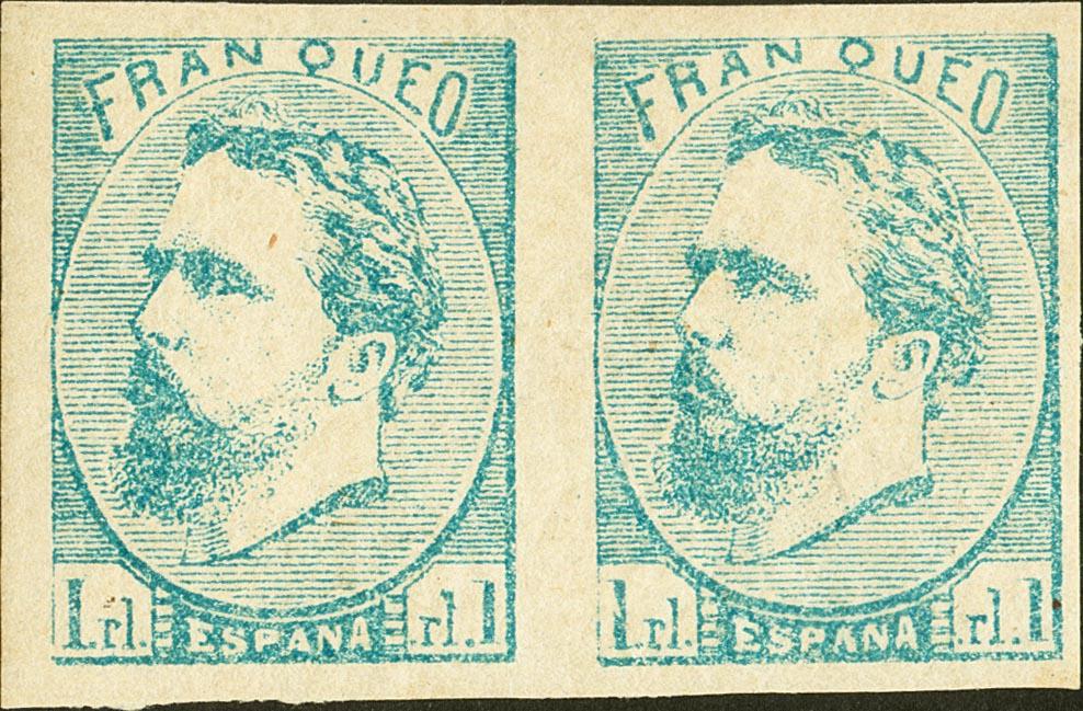 ★ 156A(2). 1873. 1 real blue, pair (light dots). MAGNIFICENT. Cert. EMF.