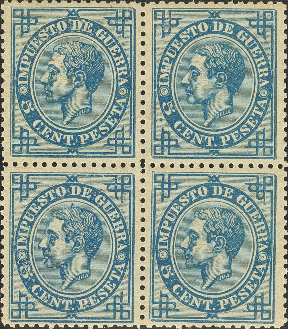 ★★/★ 183ec(4). 1876. 5 cts blue, block of four (it is a particular notch). COLOR MISTAKE. MAGNIFICENT.
