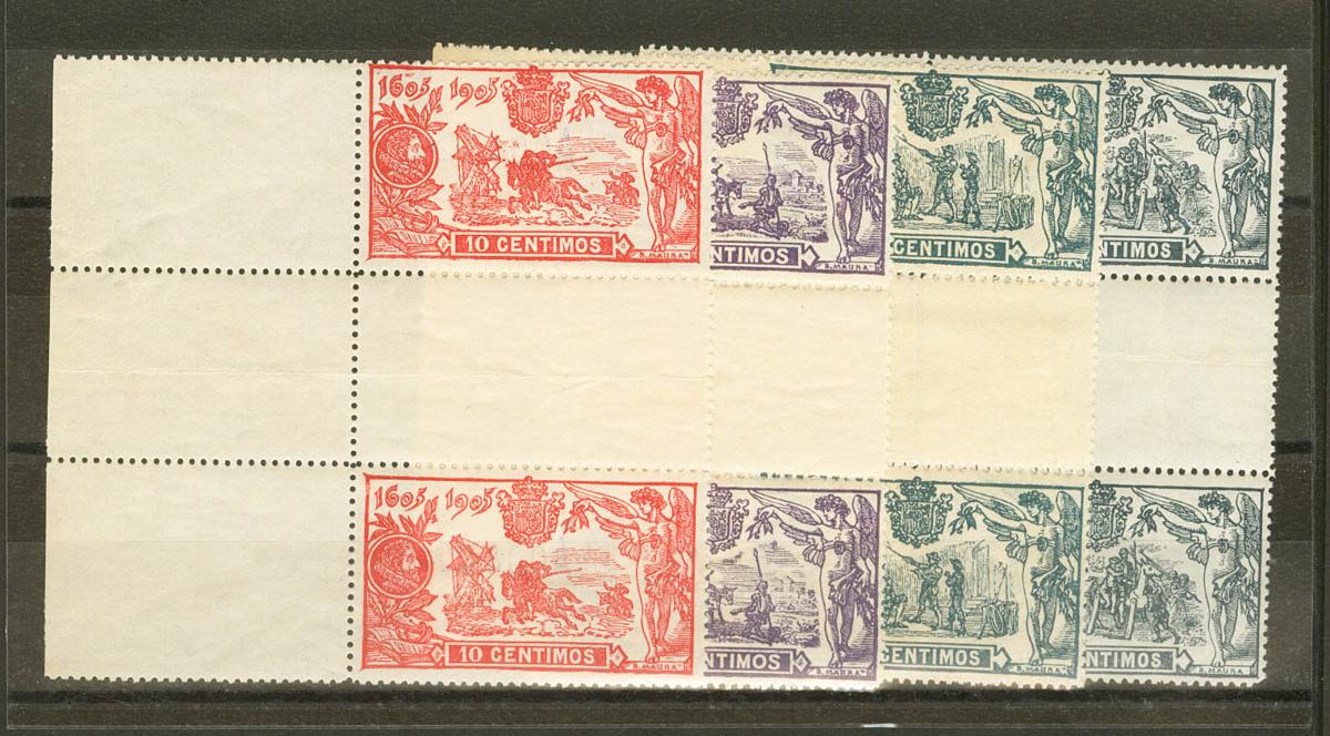 ★★ 258/59(2), 261(2), 263(2). 1905. 10 cts red, 15 cts violet, 30 cts green blue and 50 cts blue gray, pairs with INTERPANEL. Well focused. MAGNIFICENT. Edifil 2023: +700 Euros